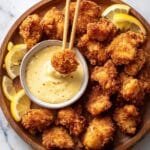 A crispy and flavorful Air Fryer Chicken Karaage recipe featuring marinated bite-size chicken thigh chunks coated in potato starch and air fried to golden perfection. This Japanese-inspired dish is perfect served with lemon wedges, kewpie mayonnaise, sriracha, and sides like boiled rice and pickled vegetables.