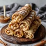 Delight in these Apple Cinnamon Crepes featuring a gluten-free oat and rice flour batter, sweetened with banana and coconut sugar, filled with a warm spiced apple mixture. Perfectly thin and tender crepes cooked on the stovetop, served with a luscious apple cinnamon filling and optional caramel drizzle.