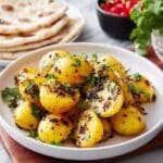 Authentic Bombay Potatoes is a flavorful Indian side dish featuring tender potatoes cooked with aromatic spices like cumin, mustard seeds, turmeric, garam masala, and chili powder. This dish delivers a perfect balance of earthiness, warmth, and a touch of freshness from lemon juice and cilantro, making it an ideal accompaniment to rice, naan, or chapati.
