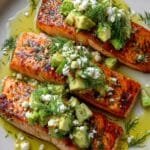 This vibrant Baked Salmon with Avocado Feta is a perfect healthy and flavorful dish combining tender, flaky salmon fillets baked to perfection and topped with a creamy, tangy mixture of ripe avocado, crumbled feta, fresh dill, and a hint of garlic. Finished with lemon slices and optional red pepper flakes for a subtle kick, this dish is easy to prepare and ideal for a nutritious weeknight dinner or elegant entertaining.