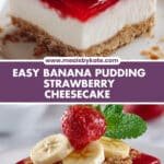 Keep your leftovers in an airtight container or cover the springform pan tightly with plastic wrap. Stored in the fridge, this Banana Strawberry Cheesecake Recipe stays creamy and fresh for up to 3 days. The pudding layer maintains its silkiness, while the fruit retains its bright flavor. Avoid leaving it uncovered to prevent drying.