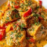 This Brazilian Coconut Chicken recipe features tender chicken breasts simmered in a rich, creamy coconut milk sauce with aromatic onions, garlic, bell pepper, and paprika. It offers a delightful blend of flavors that capture the essence of Brazilian cuisine, perfect for a comforting and satisfying meal served hot with rice.