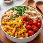This Creamy Buffalo Chicken Pasta Salad is a flavorful and hearty dish perfect for gatherings and meal prep. It combines tender rotini pasta with spicy buffalo sauce, creamy ranch dressing, and fresh vegetables, creating a deliciously tangy and satisfying salad that’s easy to make and sure to please any crowd.