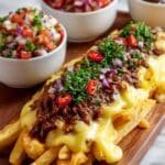 Louisiana Voodoo Fries are a delicious and easy-to-make lunch dish featuring crispy French fries topped with hot brown gravy, melted mozzarella cheese, and seasoned with Cajun spices and garlic powder. Garnished with fresh green onions, this recipe brings a flavorful Southern twist to classic loaded fries.