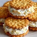 These Cheesy Ritz Crackers Party Snacks are a delightful and easy-to-make appetizer featuring a creamy blend of whipped cream cheese, sharp cheddar, garlic, and fresh veggies spread on crispy Ritz crackers and baked to golden perfection. Perfectly crispy edges with a warm, melty cheesy topping make them an irresistible treat for any gathering or party.