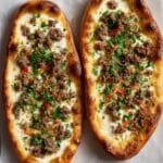 Cheesy Turkish Pide with Spiced Beef is a delicious and savory boat-shaped flatbread filled with a flavorful mix of ground beef, aromatic spices, and melted cheese. This easy-to-make recipe combines tender spiced beef with fresh vegetables and mozzarella cheese, baked to golden perfection for a comforting and satisfying meal perfect for lunch or dinner.