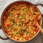 Sopa De Fideo Chicken is a comforting Mexican noodle soup featuring delicate toasted vermicelli pasta simmered in a flavorful homemade chicken broth with a rich tomato-sofrito base, tender shredded chicken, and optional garnishes like fresh cilantro, lime, avocado, and cheese. This warming dish is perfect for a hearty lunch or dinner and can be served with warm corn tortillas or crusty bread on the side.