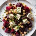 A vibrant and nutritious Chickpea Beet Feta Salad tossed in a zesty lemon-garlic vinaigrette. This refreshing salad combines earthy roasted beets, protein-packed chickpeas, and creamy feta cheese, finished with a bright and tangy dressing, perfect for a light lunch or side dish.