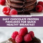 This Chocolate Protein Pancakes Recipe freezes really well. Separate each pancake with parchment and stack in a freezer-safe bag or container. They'll keep up to 2 months. When ready, just thaw overnight in the fridge or use quick reheating methods.