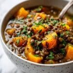 A hearty and comforting lentil and carrot stew, perfect for a cozy meal. This nutritious dish combines tender lentils, sweet carrots, and aromatic spices simmered in flavorful vegetable broth.