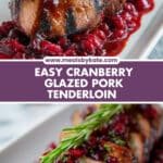 - Serve: Slice the pork tenderloin into medallions. Drizzle with the remaining cranberry glaze and garnish with fresh herbs if desired. Serve warm and enjoy.