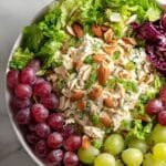 A simple and delicious chicken salad featuring tender chicken, crunchy celery, sweet grapes, and toasted almonds, all tossed in a creamy and tangy mustard-mayo dressing. Perfect for quick lunches, light dinners, or meal prep.