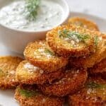 Air Fryer Fried Pickles are a crispy, tangy, and addictive snack or appetizer made by coating dill pickle chips in a seasoned flour mixture, dipping them in buttermilk, and rolling them in panko breadcrumbs before air frying to golden perfection. These crunchy delights are perfect for serving with ranch, spicy mayo, or your favorite dipping sauce.
