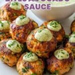 Crispy Salmon Bites with a creamy avocado sauce make a delicious and healthy appetizer or snack. These salmon meatballs are seasoned with garlic, paprika, and fresh parsley, baked to perfection, and served with a tangy avocado and sour cream dip.