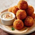 Fry the Onion Bites: Carefully lower the battered onion into the hot oil, frying for 5 to 7 minutes until it turns crispy and golden brown on all sides.