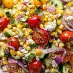 A sprinkle of extra Cotija or a squeeze of fresh lime juice just before serving always helps brighten this salad's flavors. I also love adding a few toasted pepitas or some diced avocado for creaminess and extra texture that complements the crisp corn and crunchy veggies so well.