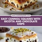 Once cooled, I like topping these Easy Italian Ricotta Cannoli Squares Recipe delights with chopped pistachios for a fresh crunch, extra mini chocolate chips for contrast, and a few maraschino cherries for that classic pop of color and sweet tang. It's such an easy way to elevate the presentation and flavor at the same time.