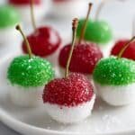 Celebrate the holiday season with these festive Christmas Drunken Cherries—maraschino cherries soaked in your choice of vodka, bourbon, or champagne, then dipped in creamy white chocolate and coated with colorful red, white, and green sanding sugar. Perfect for holiday parties or as a sweet, boozy treat, these cherries combine the rich flavors of alcohol with a crisp, sweet chocolate coating, adding a decorative and delicious touch to your festivities.