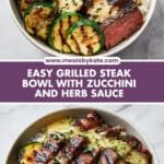From vibrant, fresh flavors to the comforting feel of a hearty bowl, this Grilled Steak Bowl with Herb Sauce Recipe combines elements that satisfy every palate. Once you make it, you'll notice how perfectly the grilled steak and zucchini balance with the creaminess of the herb sauce.