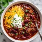 This hearty and flavorful Chili Con Carne features tender chunks of beef simmered with a blend of spices, peppers, tomatoes, and kidney beans. Perfect for a comforting meal, it develops rich depth as it slowly cooks to a thick and savory stew, ideal for serving topped with sour cream, cheese, and fresh cilantro.
