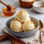 This homemade honey ice cream recipe combines creamy milk and rich cream with the natural sweetness of wildflower honey and a hint of floral orange blossom water. It's a smooth, custard-based ice cream that's easy to make and perfect for a refreshing dessert.