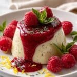 This elegant Lemon Basil Panna Cotta blends the creamy richness of classic Italian panna cotta with fresh, aromatic basil and bright lemon zest, finished with a vibrant raspberry sauce. Perfectly set and refreshingly tangy, this dessert is ideal for summer gatherings or a sophisticated treat.