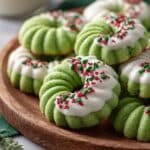 These Matcha Butter Cookies are delicate, buttery treats infused with ceremonial-grade matcha powder for a unique earthy flavor. Soft, creamy dough is piped into elegant ring shapes, chilled to hold their form, then baked to a tender crisp. Finished with a dip in melted white chocolate and festive sprinkles, these cookies are perfect for special occasions or a refined snack.