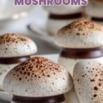 Delightful and whimsical Swiss meringue mushrooms made with whipped egg whites and powdered sugar, baked to perfection and assembled with rich dark chocolate and a dusting of cocoa powder. These charming treats are perfect for festive occasions or as a creative dessert garnish.