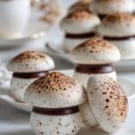 Delightful and whimsical Swiss meringue mushrooms made with whipped egg whites and powdered sugar, baked to perfection and assembled with rich dark chocolate and a dusting of cocoa powder. These charming treats are perfect for festive occasions or as a creative dessert garnish.