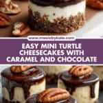 These Mini Turtle Cheesecakes are a delightful combination of creamy cheesecake, buttery graham cracker crust, rich chocolate ganache, sweet caramel sauce, and crunchy pecans. Perfectly portioned in a muffin tin, they make an elegant and indulgent dessert that's easy to serve and sure to impress.