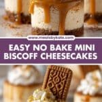 These No Bake Mini Biscoff Cheesecakes are a deliciously creamy and easy-to-make dessert featuring the irresistible flavor of Biscoff cookies and cookie butter. With a buttery cookie crust and rich, fluffy filling, these mini cheesecakes require no baking and are perfect for any occasion. Topped with melted Biscoff spread and garnished with more cookies and whipped cream, they offer a perfect blend of crunch, creaminess, and spice in every bite.