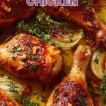 This Oven-Roasted French Garlic Chicken features succulent bone-in, skin-on chicken pieces roasted to golden perfection with a flavorful blend of garlic, shallots, and fresh herbs. Drizzled with olive or avocado oil and basted with a savory white wine and chicken broth sauce, this easy-to-make recipe delivers crispy skin and tender juicy meat, perfect for an elegant yet simple main course.