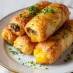 Delicious and easy-to-make Breakfast Pigs in Blanket featuring savory pork sausages wrapped in flaky puff pastry, perfect for a hearty morning treat or brunch snack.