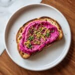This vibrant Pink Beet Hummus Toast is a healthy and flavorful twist on classic hummus, combining roasted or boiled beets with chickpeas and tahini for a creamy, nutrient-packed spread. Perfect for breakfast, lunch, or a light snack, it’s topped with fresh microgreens and crunchy radishes for added texture and visual appeal.