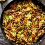 A quick and flavorful one-pan beef and cabbage stir-fry recipe that combines tender ground beef with fresh vegetables and a savory sesame-soy sauce. Perfect for a nutritious lunch, this dish is easy to prepare and can be served over rice or a low-carb alternative.