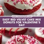 These Red Velvet Cake Mix Valentine Donuts are a delightful twist on traditional donuts, made effortlessly with cake mix and applesauce for a moist texture. Topped with melted cream cheese frosting and colorful sprinkles, they make a perfect festive treat for Valentine's Day or any special occasion.