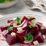 A vibrant and refreshing Beet Salad with creamy goat cheese, tangy red wine vinaigrette, and fresh herbs. Roasted beets provide a sweet, earthy base that pairs beautifully with the sharpness of red onion and the richness of goat cheese, making this salad perfect as a light lunch or an elegant side dish.