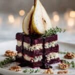 This elegant appetizer features roasted beet slices layered with ripe pear and tangy blue cheese, finished with a sweet balsamic glaze and a drizzle of olive oil. Served over fresh arugula, these roasted beet blue cheese towers are a perfect combination of earthy, sweet, and savory flavors, ideal for impressing guests or enjoying as a light starter.