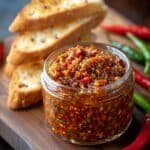 A rich and flavorful Roasted Eggplant and Pepper Spread featuring charred eggplants and peppers simmered with onions, tomato sauce, and spices, perfect for canning or serving as a delicious appetizer or side dish.