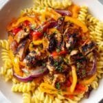 Find it online: https://mealsbykate.com/roasted-pepper-chicken-pasta-recipe/