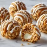 Salted Caramel Pretzel Cheesecake Balls are bite-sized, no-bake treats featuring a creamy, tangy cheesecake filling mixed with crunchy crushed pretzels, coated with a luscious caramel drizzle and garnished with sea salt for the perfect balance of sweet and salty flavors. These easy-to-make cheesecake balls are chilled until firm, making them an ideal dessert for parties or anytime you crave a delightful indulgence.