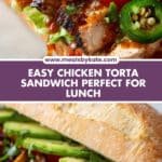 This Flavor-Packed Chicken Torta Sandwich is an easy and satisfying lunch option featuring marinated and grilled chicken layered on toasted telera rolls with creamy refried beans, fresh avocado, pickled jalapeños, queso fresco, and crisp veggies for a delicious Mexican-inspired sandwich experience.