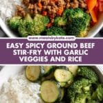 This Easy Spicy Ground Beef Stir-Fry features juicy, flavorful ground beef cooked with garlic and chili flakes, paired with vibrant sautéed vegetables and served over fluffy steamed rice. It's a quick and satisfying meal perfect for weeknight dinners, bringing together a perfect balance of spice, umami, and wholesome vegetables for a comforting and nutritious dish.