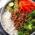 This Easy Spicy Ground Beef Stir-Fry features juicy, flavorful ground beef cooked with garlic and chili flakes, paired with vibrant sautéed vegetables and served over fluffy steamed rice. It’s a quick and satisfying meal perfect for weeknight dinners, bringing together a perfect balance of spice, umami, and wholesome vegetables for a comforting and nutritious dish.