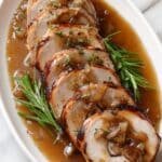 This Stuffed Beef Tenderloin with Apple Bourbon Gravy is an elegant and flavorful dish that features a tender beef tenderloin stuffed with a savory apple, bacon, and herb mixture. The beef is seared to create a rich crust and then oven-roasted to perfection. The dish is complemented by a luxurious apple bourbon gravy that balances savory, sweet, and aromatic flavors, making it perfect for special occasions or a gourmet dinner.