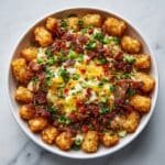 The Ultimate Tater Tot Breakfast Bowl is a hearty and comforting morning meal packed with crispy baked tater tots, fluffy scrambled eggs, savory bacon or sausage, melted cheddar cheese, and fresh vegetables. Perfect for a satisfying breakfast or brunch, this recipe blends crispy textures and rich flavors in an easy-to-assemble dish topped with optional sour cream or salsa for an extra zing.