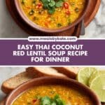 This cozy Thai Coconut Red Lentil Soup is a warm, comforting bowl packed with vibrant flavors from red curry paste, fresh ginger, and turmeric. Made creamy with coconut milk and protein-rich red lentils, it's a nourishing and easy-to-make vegetarian soup perfect for chilly days or anytime you crave a fragrant, satisfying meal.