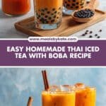 This Thai Iced Tea with Boba recipe offers a refreshing and creamy beverage that combines the bold flavors of traditional Thai tea with chewy tapioca pearls. Perfectly sweetened with brown sugar and creamy evaporated and condensed milk, it delivers an authentic cafe-style experience at home.