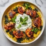A wholesome and flavorful one-pan meal featuring tender chicken breast cooked with turmeric, paprika, and fresh ginger, combined with fragrant jasmine or basmati rice, spinach, and a zesty lemon finish. This anti-inflammatory dish is quick to prepare and perfect for a nutritious, comforting dinner.