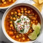 This White Chickpea Chili offers a delicious vegan twist on the classic chili, featuring creamy chickpeas simmered with aromatic spices, green chiles, and coconut milk for a rich and comforting meal.